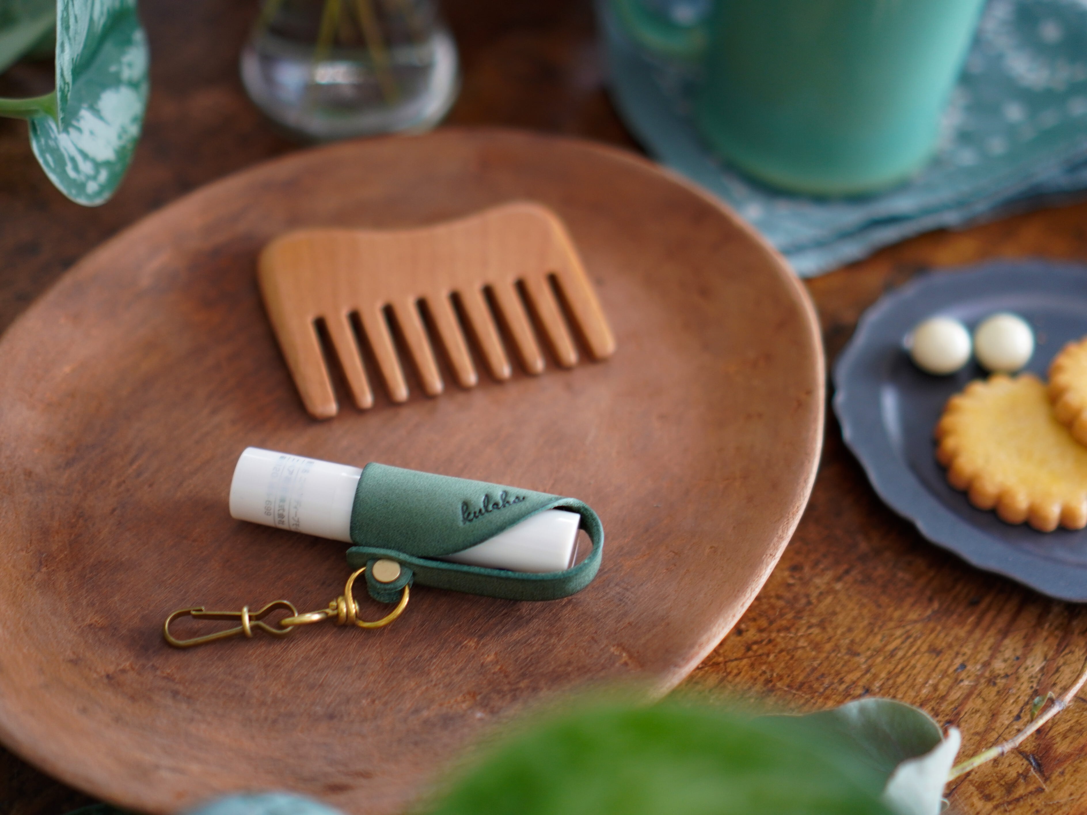 シンプルな見た目に、オリジナルの真鍮金具が引き立つ、小さいながらもkulehaらしさ満点の作品です。