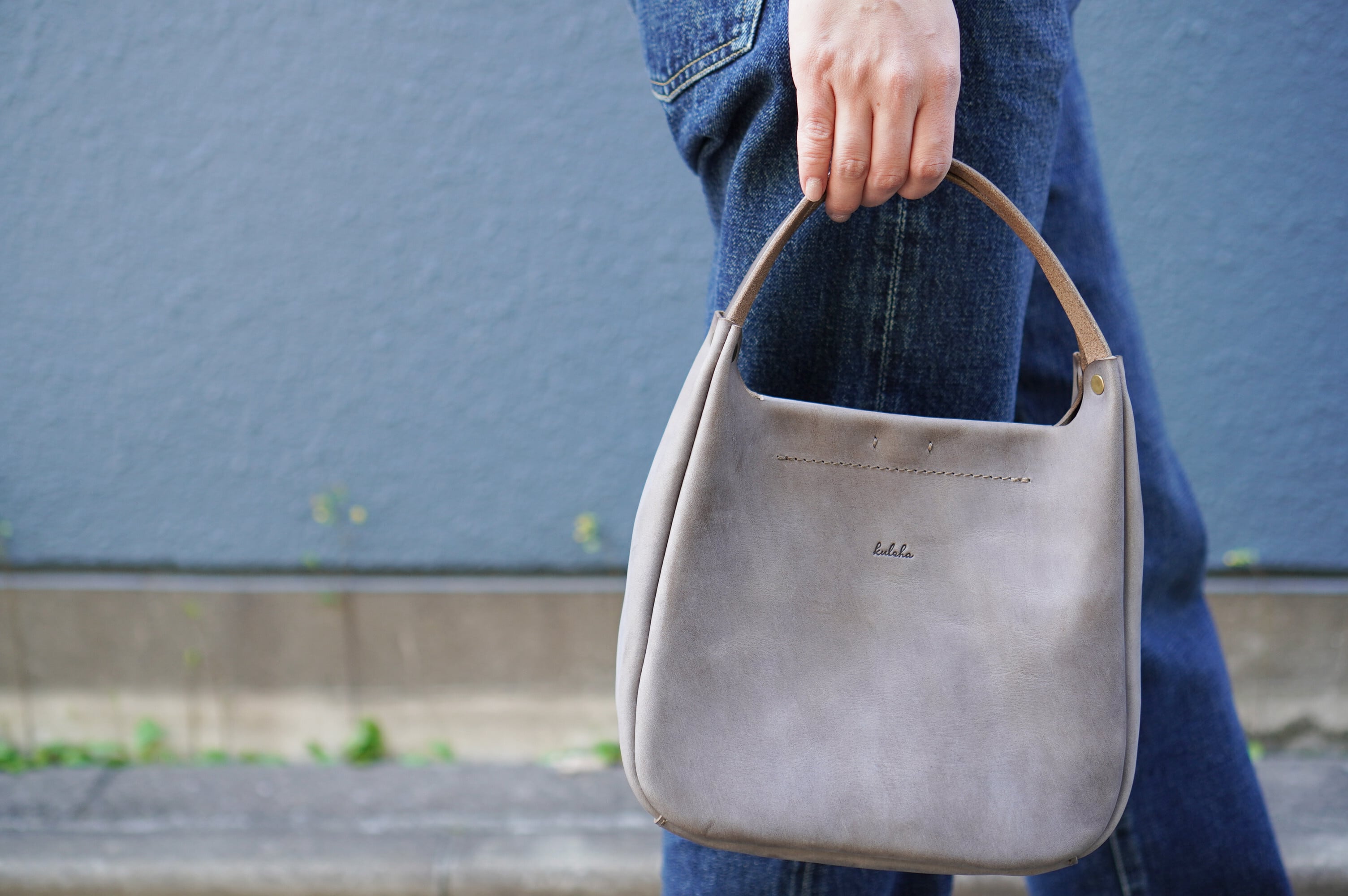 持ち手から本体にかけての美しいカーブが印象に残るkulehaのミニトート。