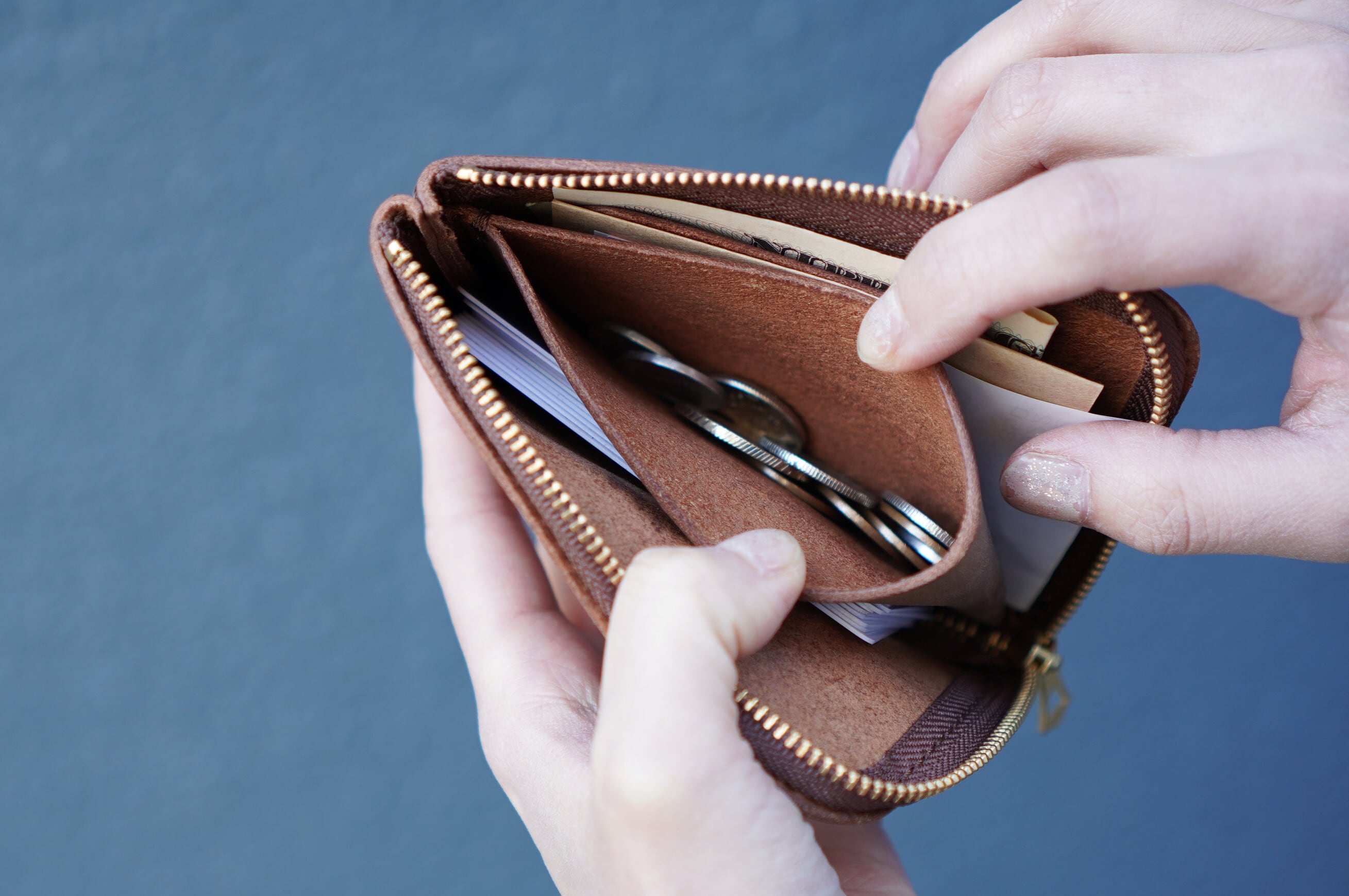 お札の角がファスナーに噛まないよう横幅を少しだけワイドに設計し、中にはお札とレシートを分けられるよう、1枚の仕切りをつけました。