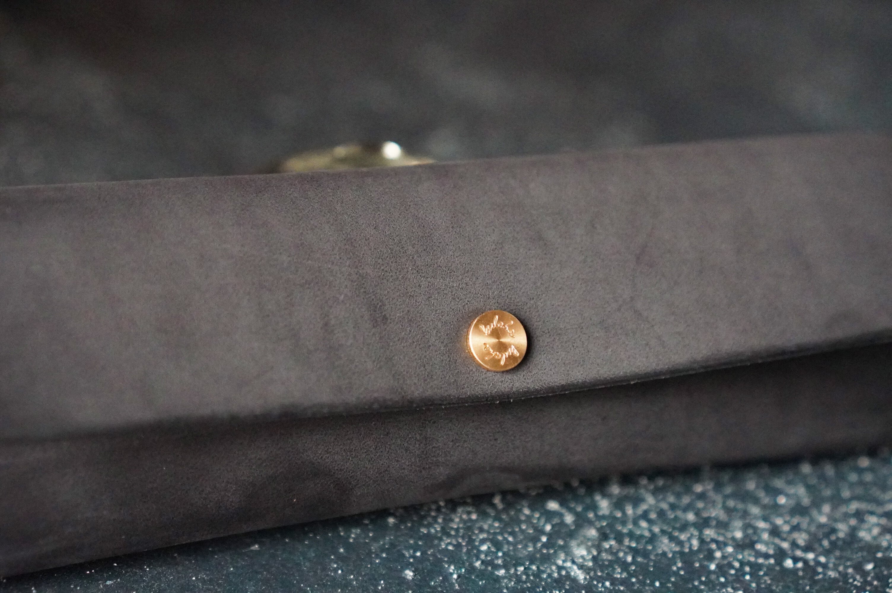シンプルなデザインに、オリジナルの真鍮ホックがアクセントを添えます。